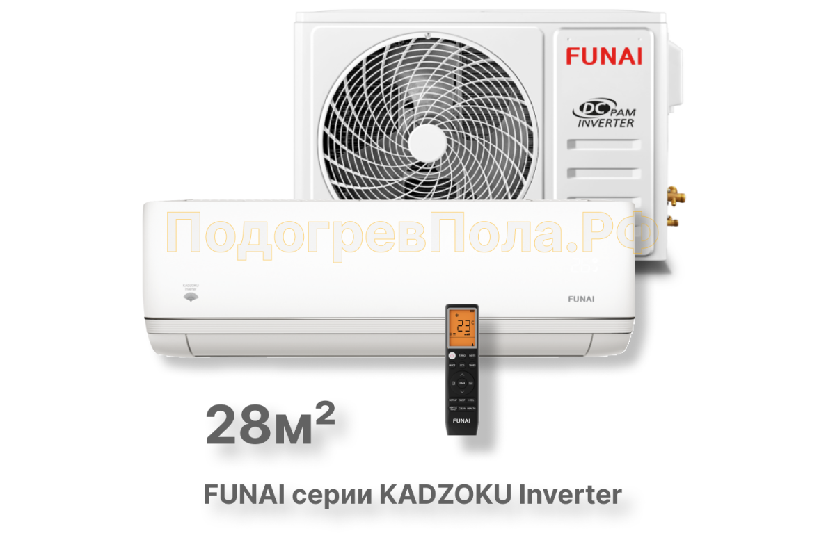 Купить FUNAI Инверторные сплит системы серии KADZOKU Inverter RAC-I-KD30HP.D01 по выгодной цене вы можете в нашем магазине "ПодогревПола.Рф" в г. Кемерово.